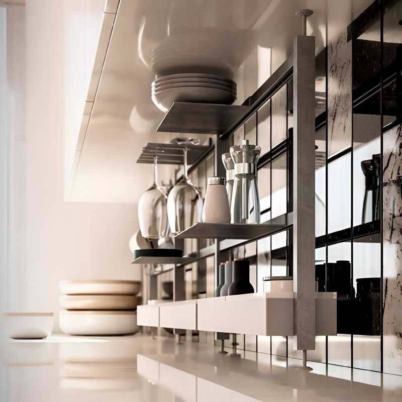 Ajoutez un porte-gobelet à votre doublure de grille. Fabriqué en aluminium, un système unique qui permet d'organiser les tasses près de la cuisine ou de la zone de travail et facilement accessible.