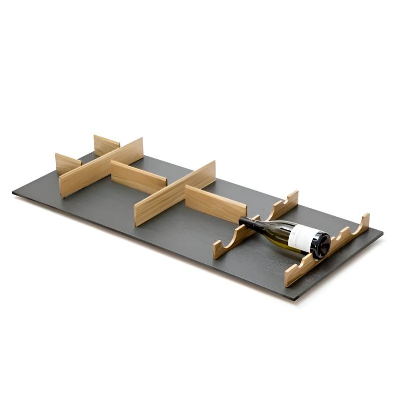 Les diviseurs en chêne incluent des cylindres métalliques fixés à chaque pièce, permettant leur fixation directe au fond perforé par pression.