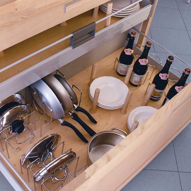 Base perforée en bois modèle Open Space pour bloc-tiroir de cuisine. Disponible en 3 couleurs au choix et pour différentes tailles de tiroirs. Seule base sans accessoires.