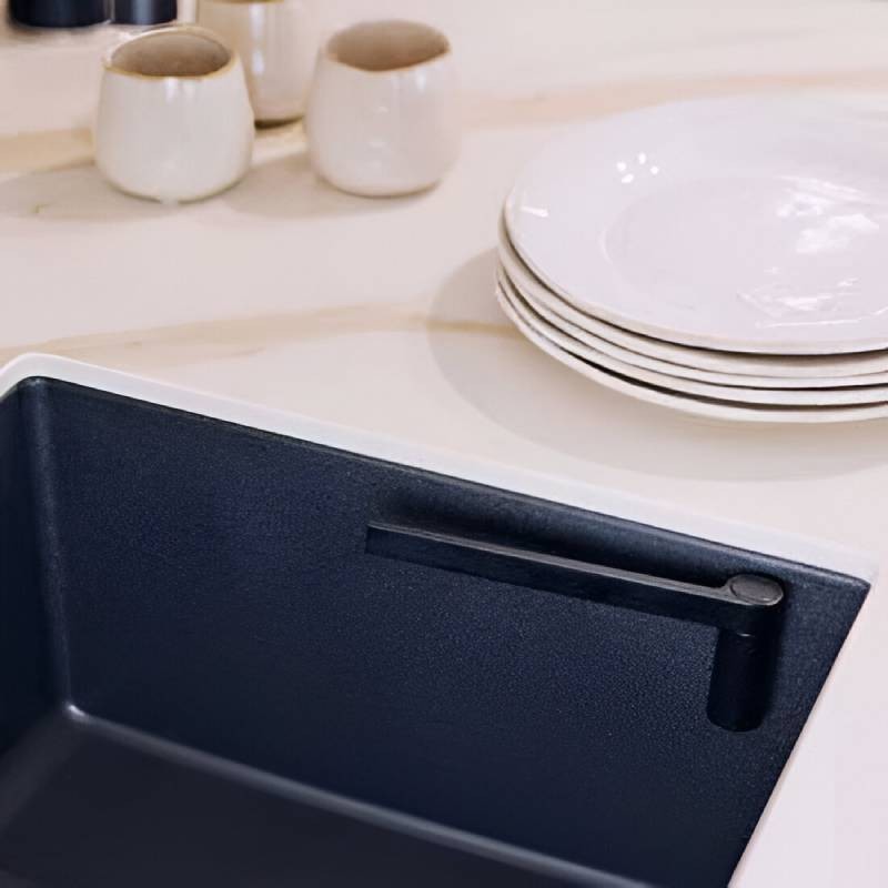 Le porte-chiffons droit noir de Cucine Oggi est un accessoire destiné à garder les chiffons organisés et toujours à portée de main dans la zone de l’évier. Fabriqué en biocomposite noir, il offre résistance et durabilité, tandis que son design droit apporte un style moderne et élégant qui s’intègre parfaitement dans les cuisines contemporaines.