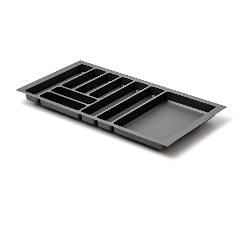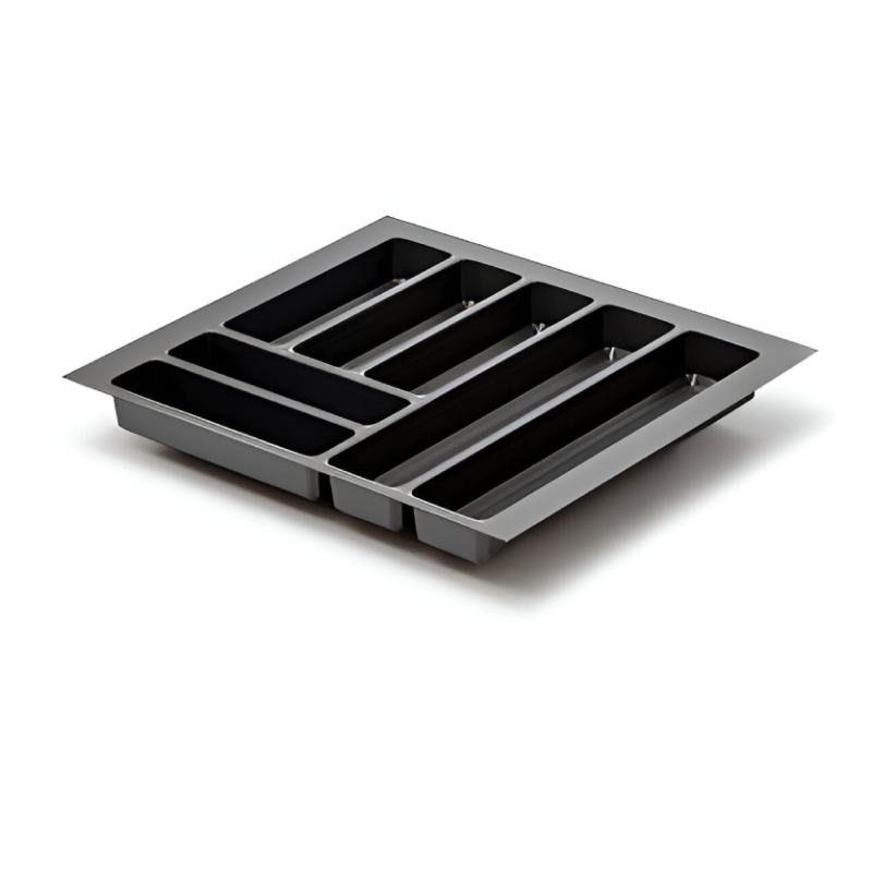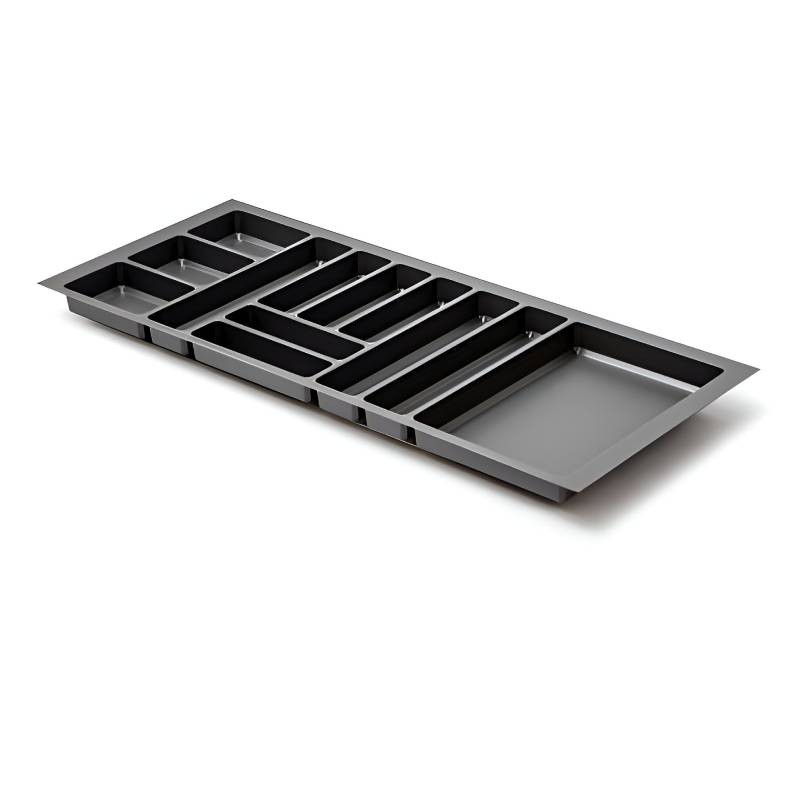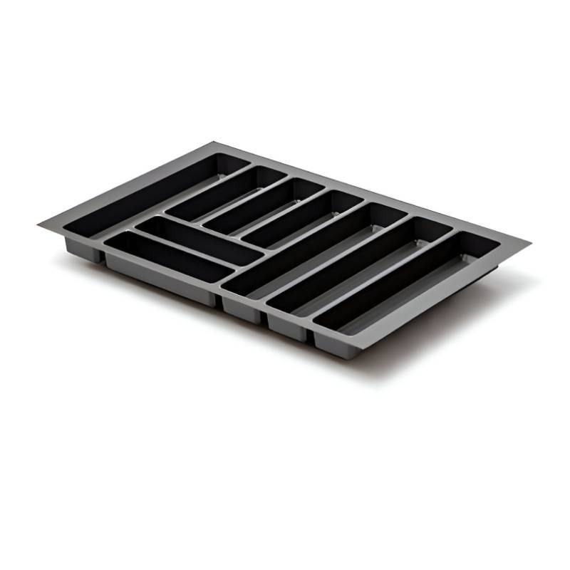 Ce range-couverts est disponible en couleur anthracite, blanc et gris, permettant de choisir la finition qui s’adapte le mieux au design intérieur du tiroir. En fonction de la taille sélectionnée, le range-couverts intègre un nombre différent de divisions, facilitant une organisation efficace et compatible avec toute marque de tiroir.