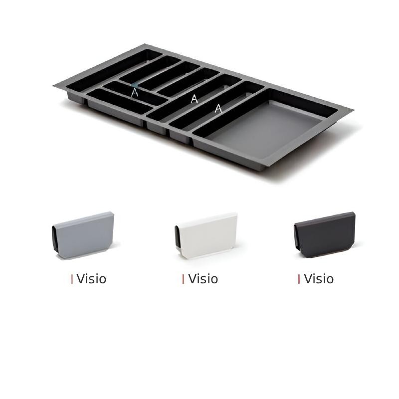 Range-couverts ABS Économique VISIO – Cucine Oggi est un organiseur intérieur de tiroirs conçu pour offrir une solution pratique, résistante et adaptable à toute cuisine. Fabriqué en polystyrène de haute qualité, le modèle VISIO est présenté en une seule pièce et est disponible pour des tiroirs avec des largeurs comprises entre 30 cm et 120 cm.