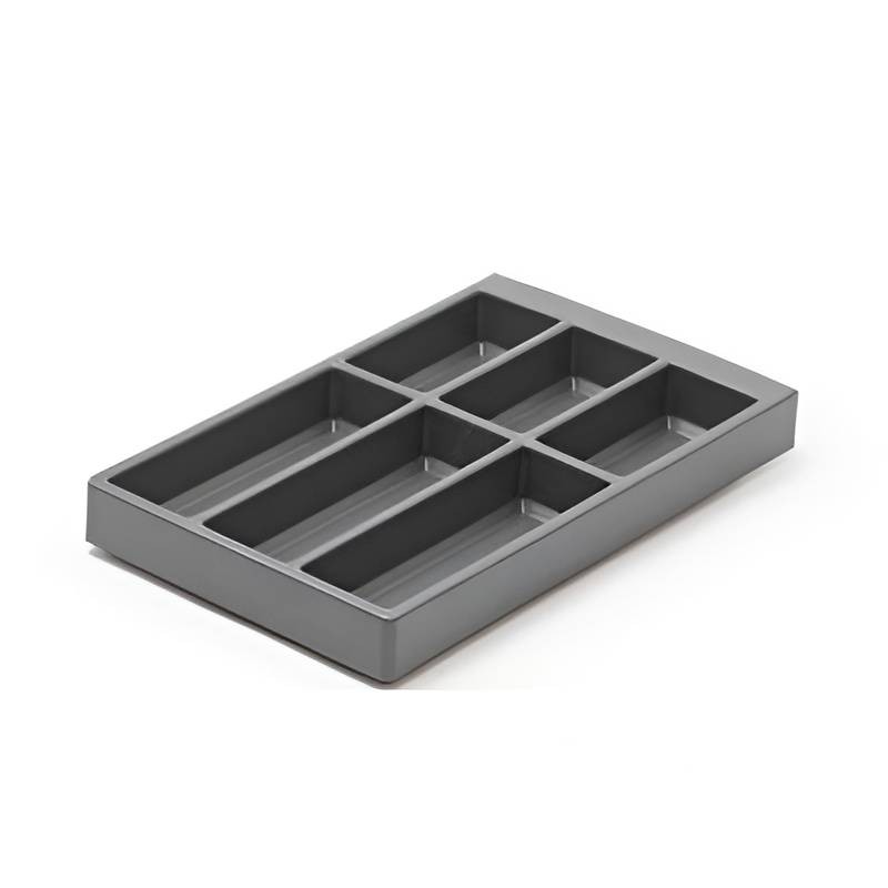 Range‑Couverts Island de 300 mm en polypropylène gris anthracite, disponibles range‑couverts, range‑épices et range‑ustensiles, adaptés aux tiroirs à partir de 500 mm.