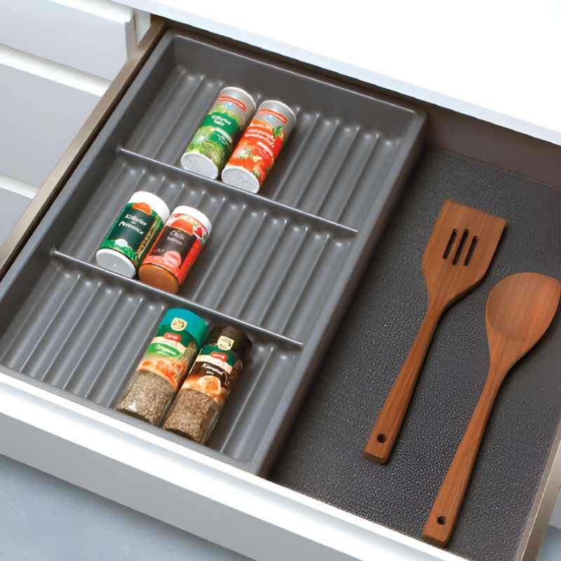 Accessoire optionnel : Ajoutez le tapis rigide antidérapant de couleur noire (non inclus) pour apporter une finition élégante à votre tiroir de cuisine.