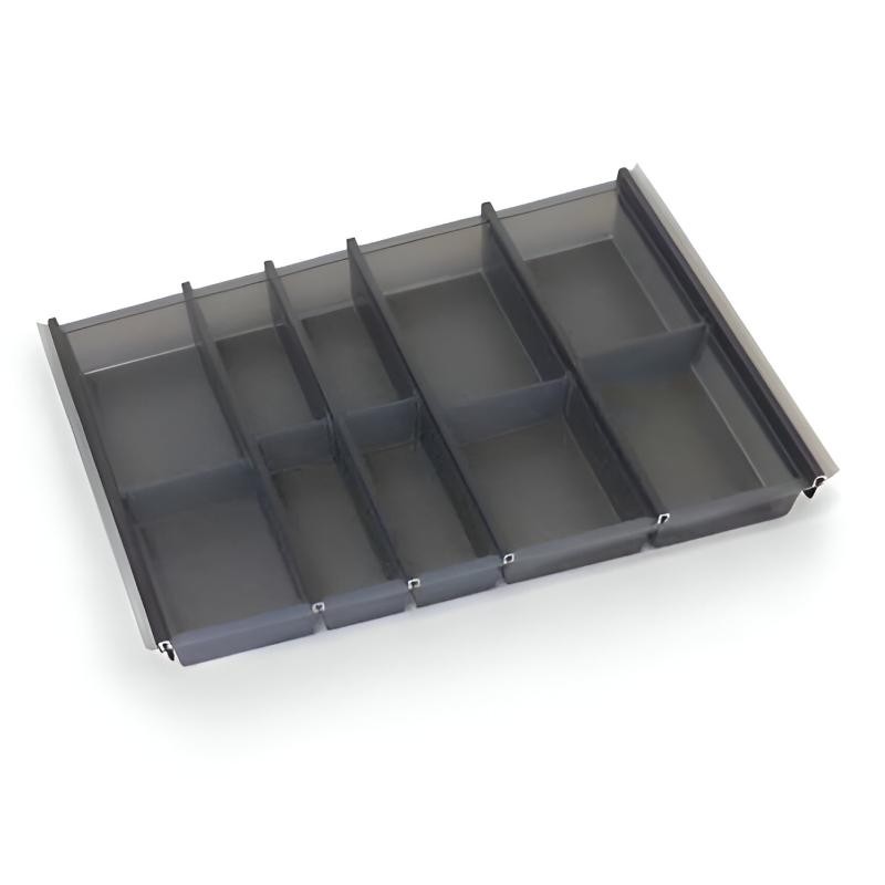 Nous présentons les équipements de tiroir du Fusion System. Ces range‑couverts sont conçus pour remplir entièrement la largeur du tiroir grâce à des bacs en plastique, sans besoin de tapis antidérapants. Le Set 7 est prévu pour des tiroirs de 750 mm et offre une organisation moderne, pratique et totalement intégrée grâce à la combinaison de bacs modulaires, de tiges et d’embouts flexibles. Disponible en plusieurs finitions transparentes, il apporte une esthétique contemporaine et une excellente fonctionnalité.