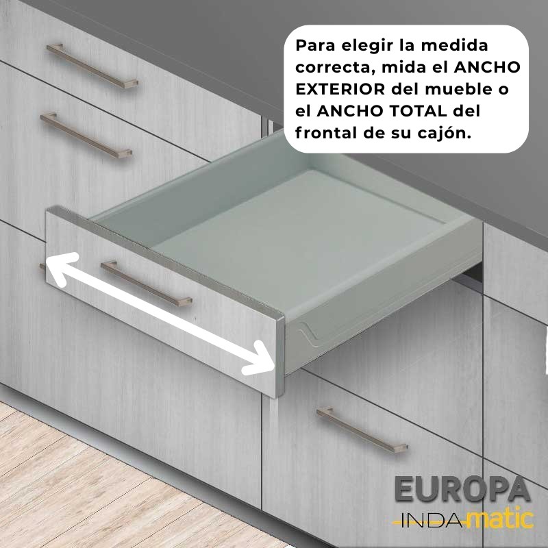 Important: Ce produit est une pièce de rechange valable exclusivement pour le tiroir Europa de la marque Indaux et pour les glissières de fond standards de 48/50 cm.