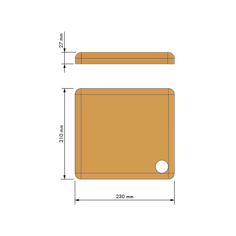 Planche à découper en bois naturel compatible avec le porte-couverts M&C de Menage&Confort. Dimensions (largeur x hauteur x profondeur): 210 x 27 x 230 mm.