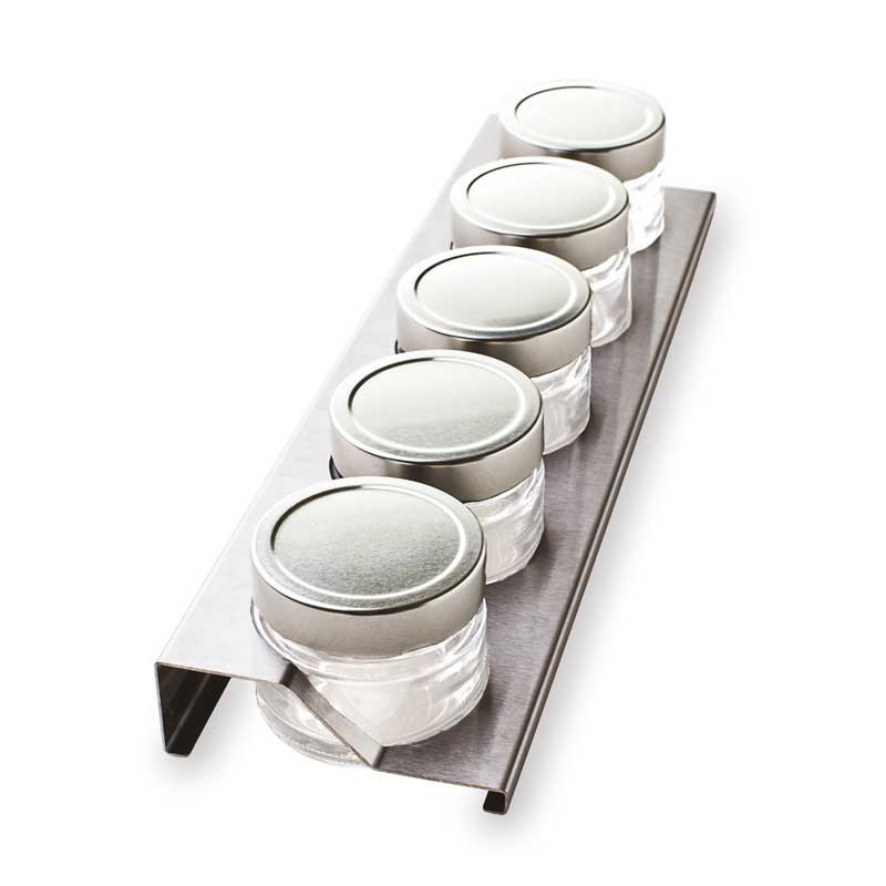 Portaespecias en acier inoxydable avec 5 especieros de verre à cubertero cuisine modèle Premiere.