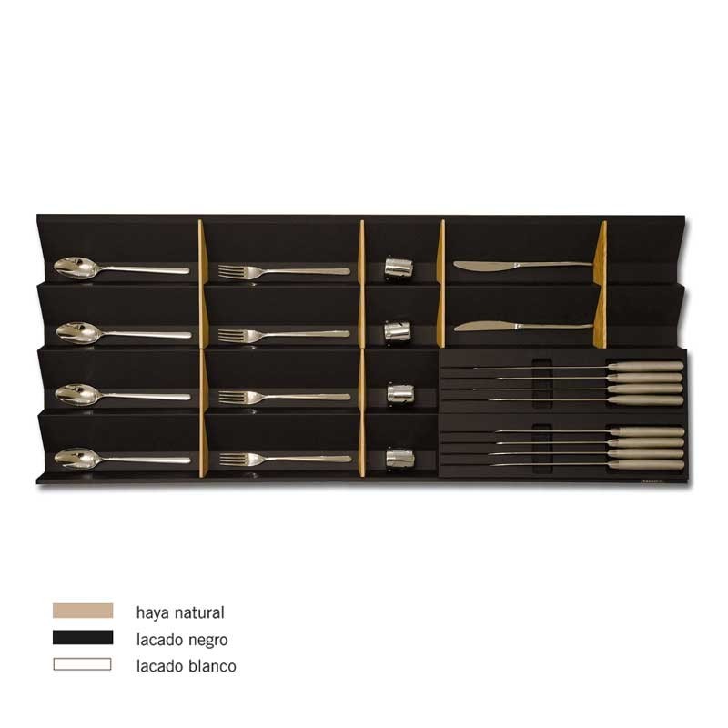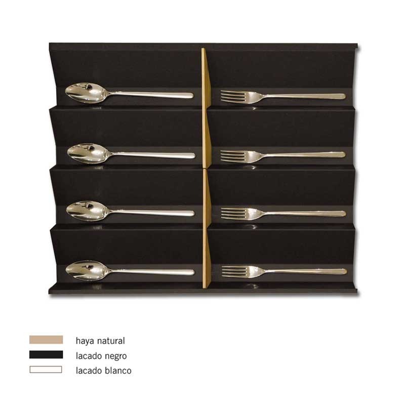 Cubertero en bois modèle de Marée pour un tiroir de la cuisine. Disponible en 3 couleurs à choisir, et pour les différentes mesures de la pièce de mobilier. Ne pas inclure les diviseurs ou portacuchillos.