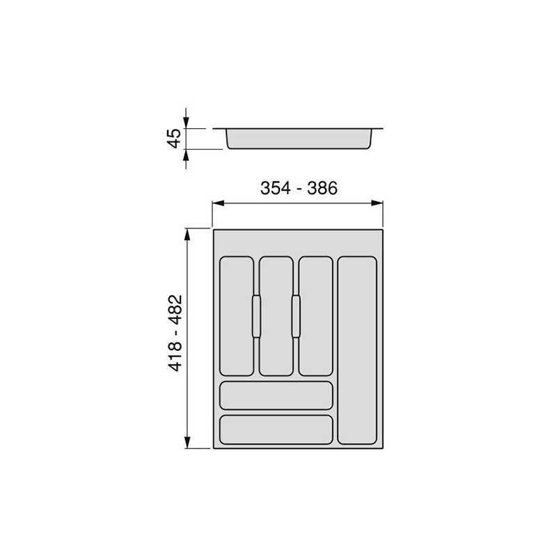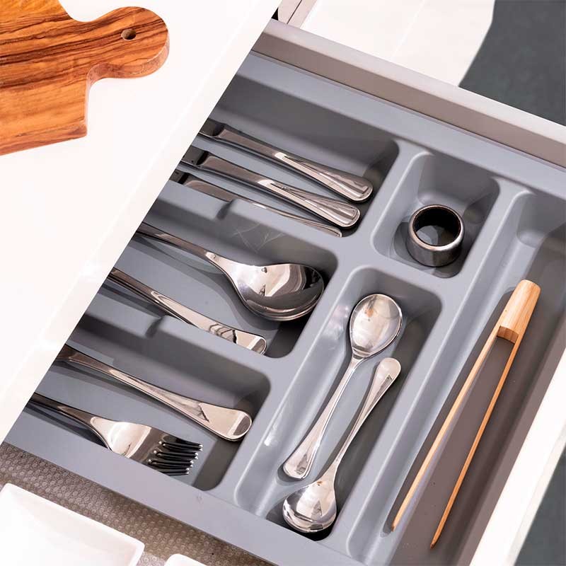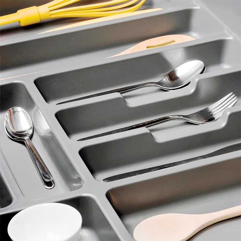 Range-couverts universelle pour tiroirs de cuisine faite de plastique injecté de couleur gris modèle Optima Emuca.