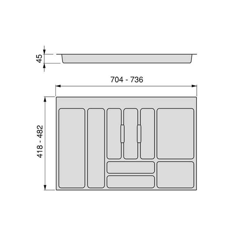 Parce qu'ils sont des découpes peuvent être dimensionné pour une utilisation avec des tiroirs assemblés en modules de largeur standard entre 400 et 800 mm, profondeur 450 mm et 500 mm avec un plateau d'une épaisseur comprise entre 16 mm et 19 mm, en fonction du modèle choisi.