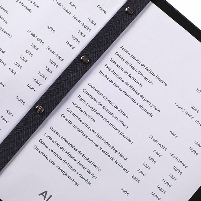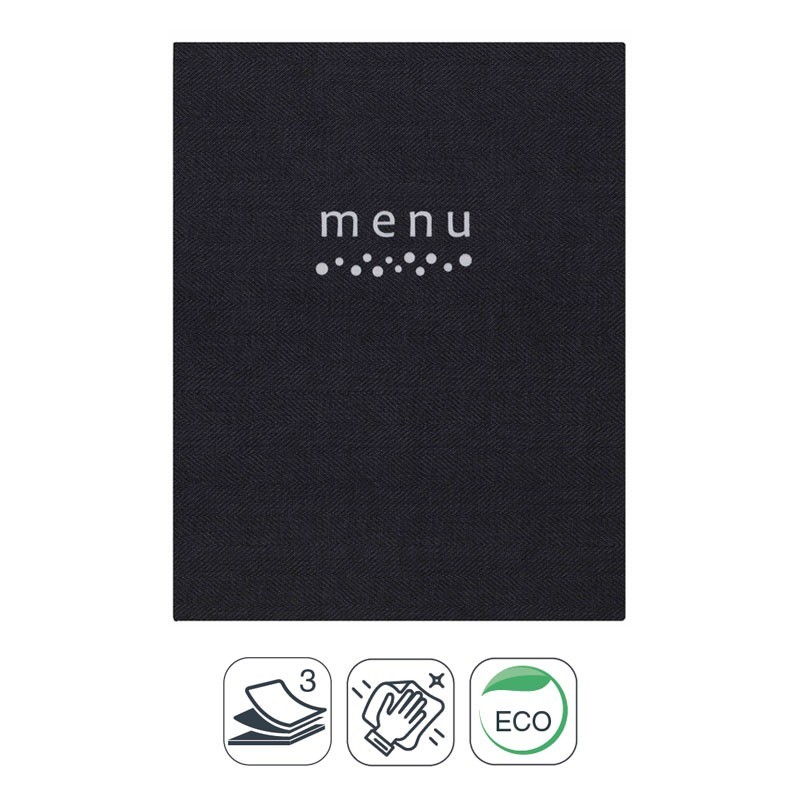 Portamenús collection Paul a fait en imitation cuir avec la chaleur d'étanchéité de couleur blanche et les manches de PVC avec vissée intérieure. Idéal pour l'hôtellerie et la restauration. La taille à choisir.