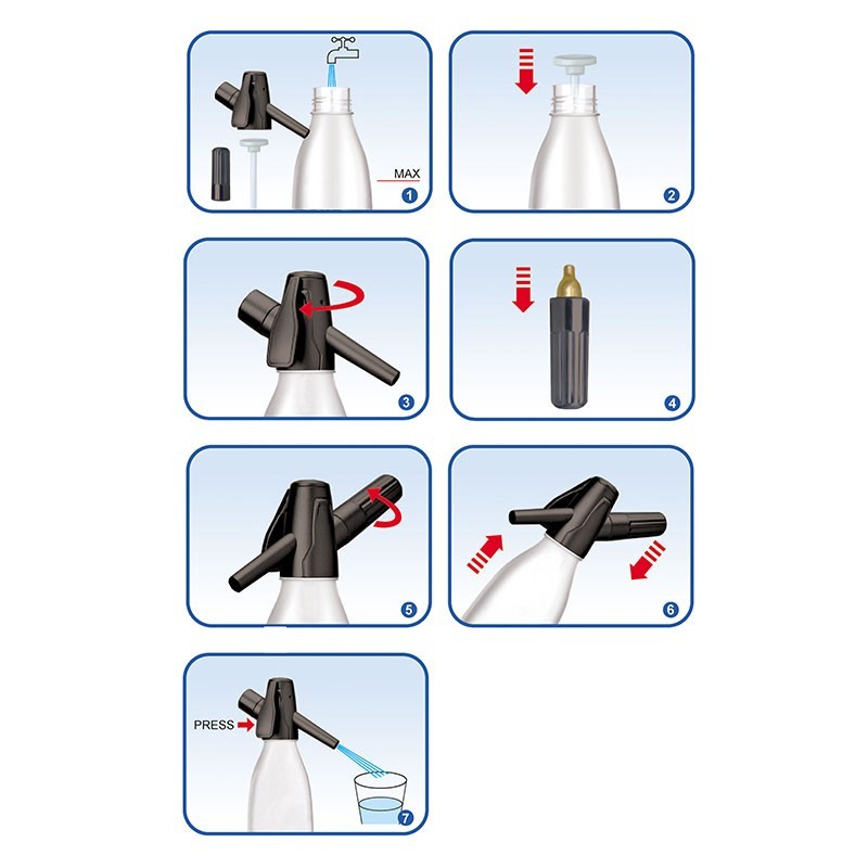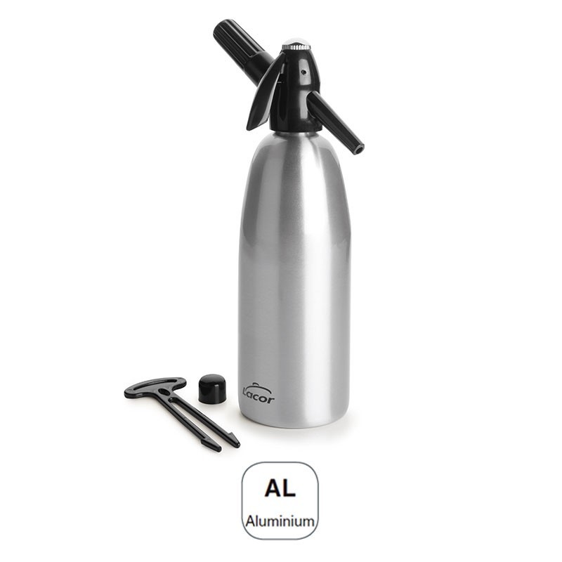 Bouteille siphon de CO2 réutilisable de 1 litre de capacité 10x39 cm, fabriqué en aluminium. Idéal pour carbonatar boissons et de faire des sodas.