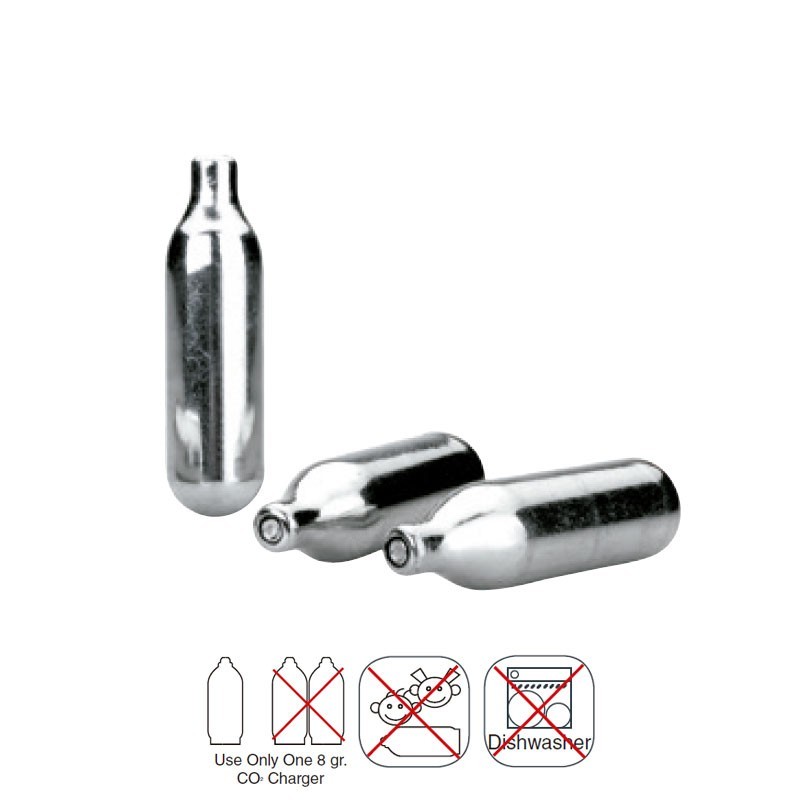 Pack de 10 charges de CO2 de 8 grammes pour les bouteilles en aluminium siphon de Lacor.