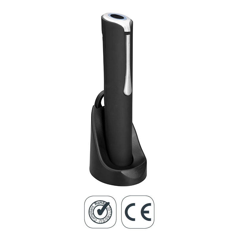 Tire-bouchon électrique puissance de 1.2 V avec poignée ergonomique et chargeur secteur. Un fonctionnement silencieux et sans vibration. De qualité professionnelle pour un usage domestique. Mesures: 12x32 cm
