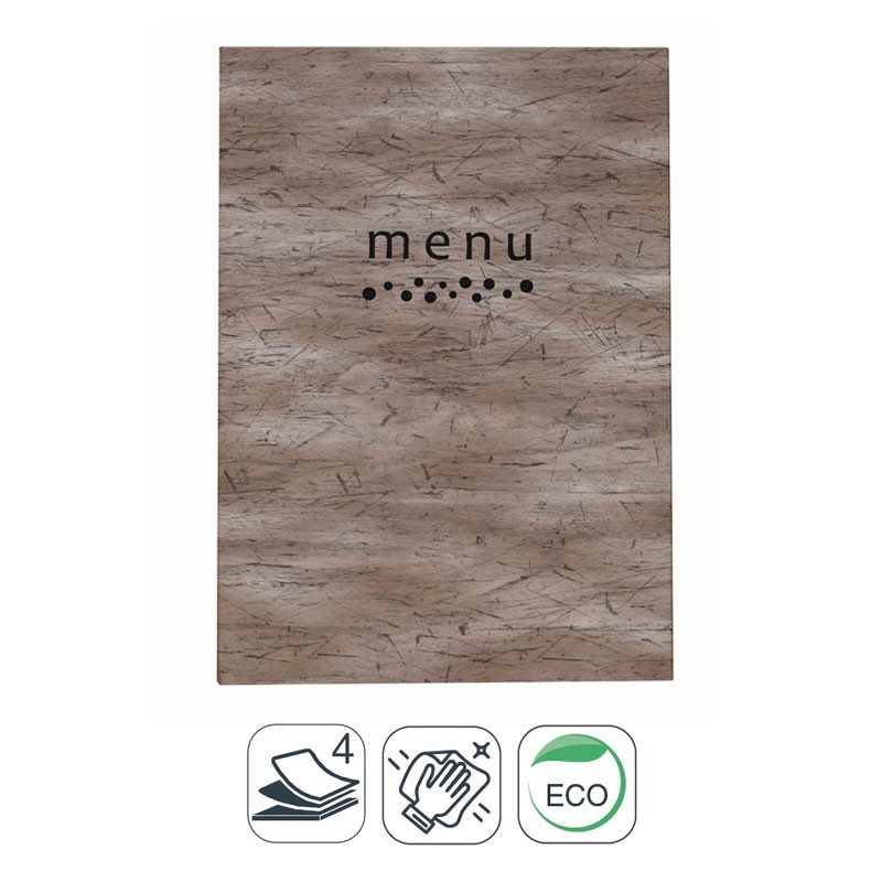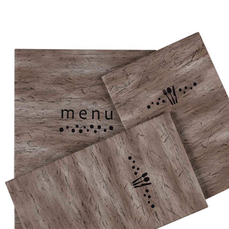 Portamenús collection Andy fait en imitation cuir avec sceau de chaleur en couleur noir et les manches fixe à partir de PVC. Idéal pour l'hôtellerie et la restauration. La taille à choisir.