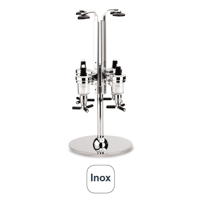 Serveur de boissons et de cocktails de type revolver avec 4 bouteilles de 4 cl de chacun. Fabriqué en acier inoxydable de haute qualité est idéal pour les bars et bars-salons.