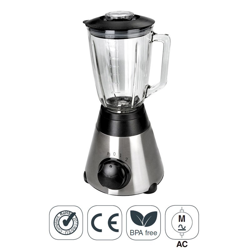 Batteur de cuisine 500 W, 2 vitesses, plus de la fonction de couper la glace, verre, carafe, 1,5 l de capacité et corps en acier inoxydable.