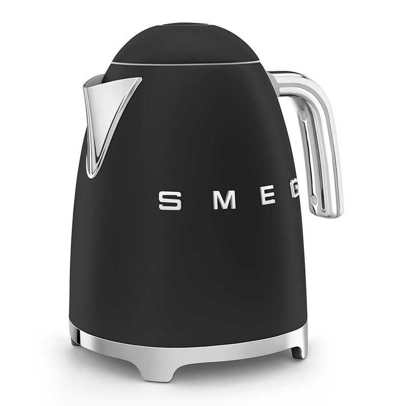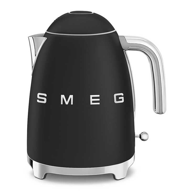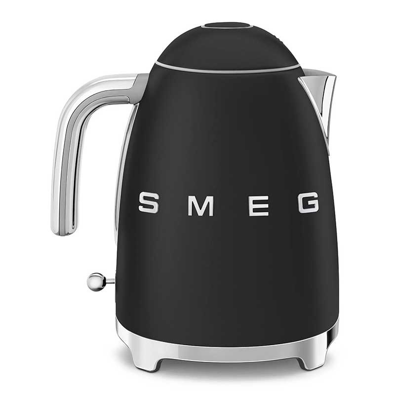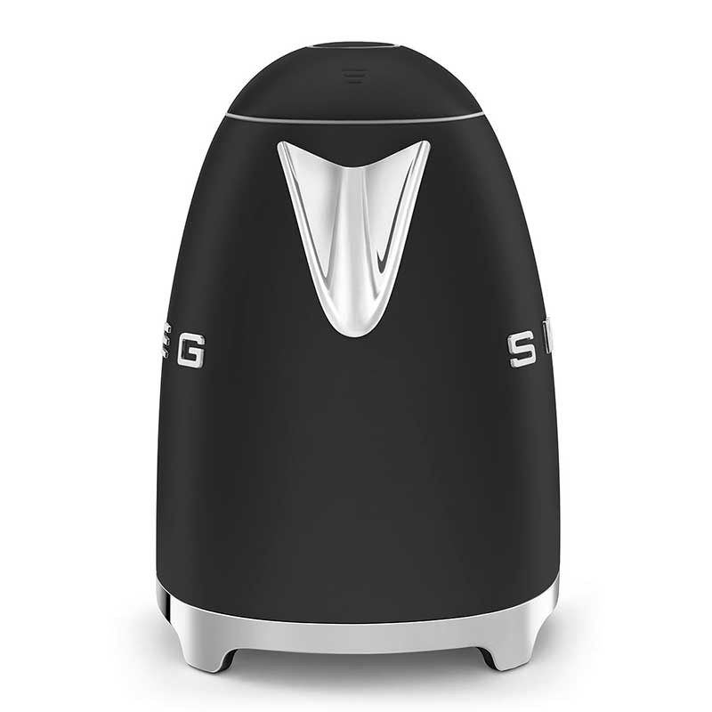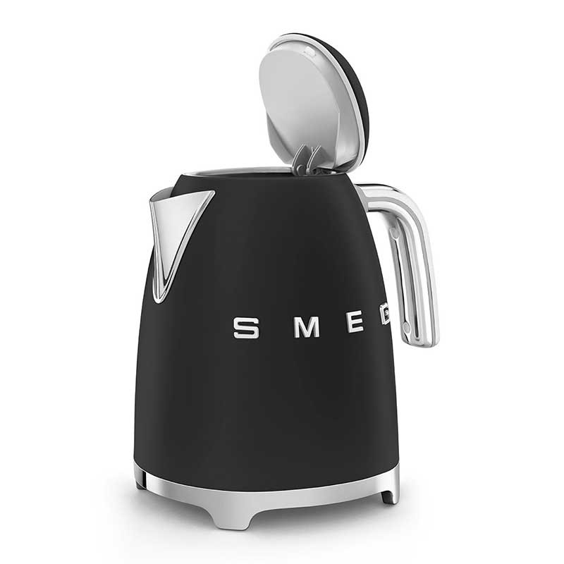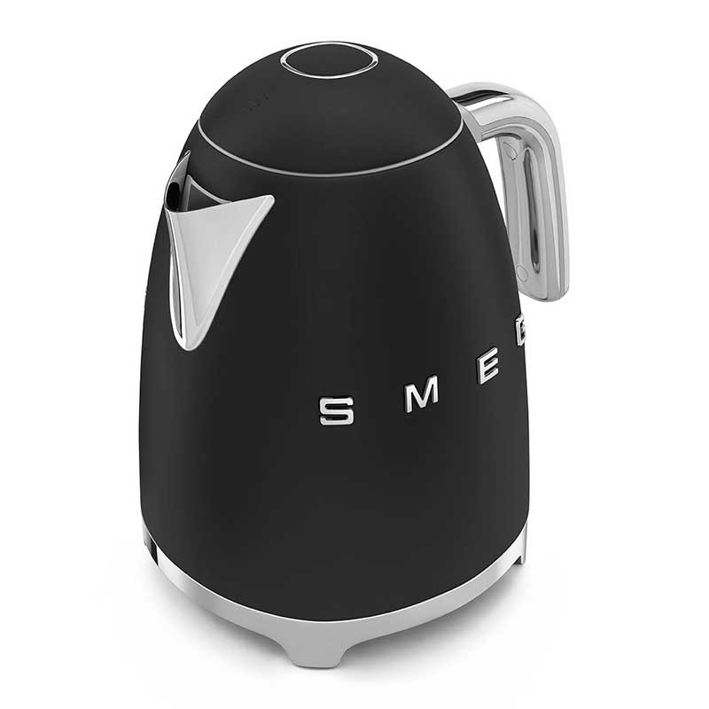 Bouilloire standard Style Smeg 50 de 1,7 litres de capacité avec corps en acier inoxydable finition noir mat et base pivotante à 360º.