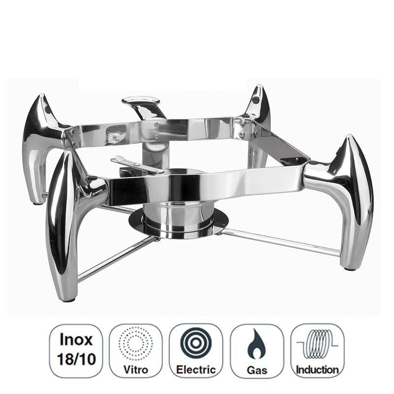 Soutien Chafing Dish GN 2/3 de la gamme Luxe fabriqués en acier inoxydable 18/10 de haute qualité et une excellente résistance à la corrosion. Idéal pour les buffets.