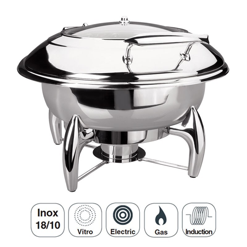 Chafing Dish rond-gamme Luxe fabriqués en acier inoxydable 18/10 de haute qualité et une excellente résistance à la corrosion. Idéal pour les buffets.