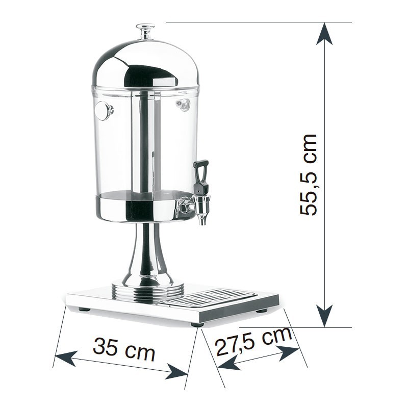 Distributeur de jus de 8,7 L avec pied chromé en acier inoxydable 18/10 de haute qualité et une excellente résistance à la corrosion. Idéal pour les buffets.