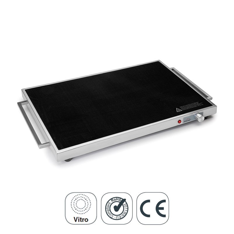 Le chauffage de la plaque électrique table de cuisson en céramique 230 W de puissance, fabriqué en verre et en acier inoxydable 18/10 de haute qualité et une excellente résistance à la corrosion. Idéal pour les buffets.