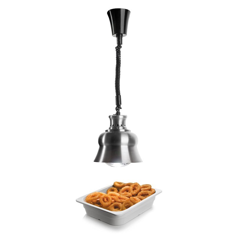 Lampe-chauffage par infrarouge à un toit avec câble extensible et 275 W pour garder les plats chauds dans les cuisines professionnelles, de la restauration et des buffets.