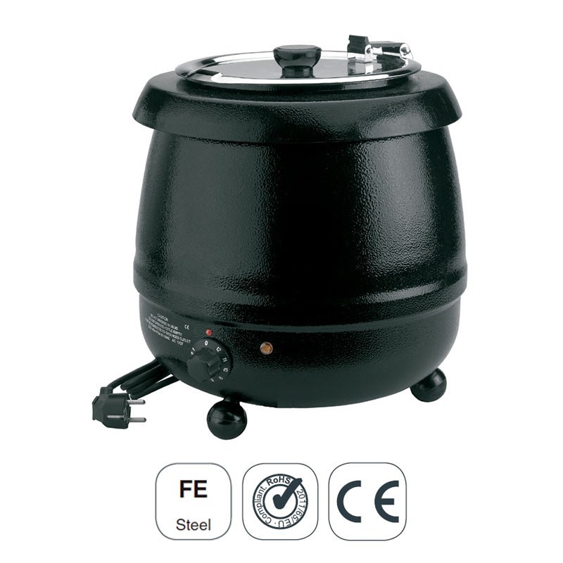 Pot de chauffage électrique soupe 10 L de fer, en fonte émaillée noir de haute qualité, de robustesse et de force. Idéal pour les buffets.