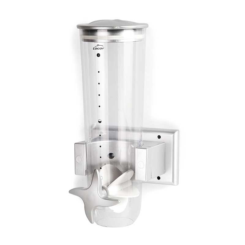 Distributeur de céréales pour mural avec système de distributeur giratoire facile à utiliser. Idéal pour aliments tels que céréales, flocons davoine, pâtes, café, fruits secs, etc.