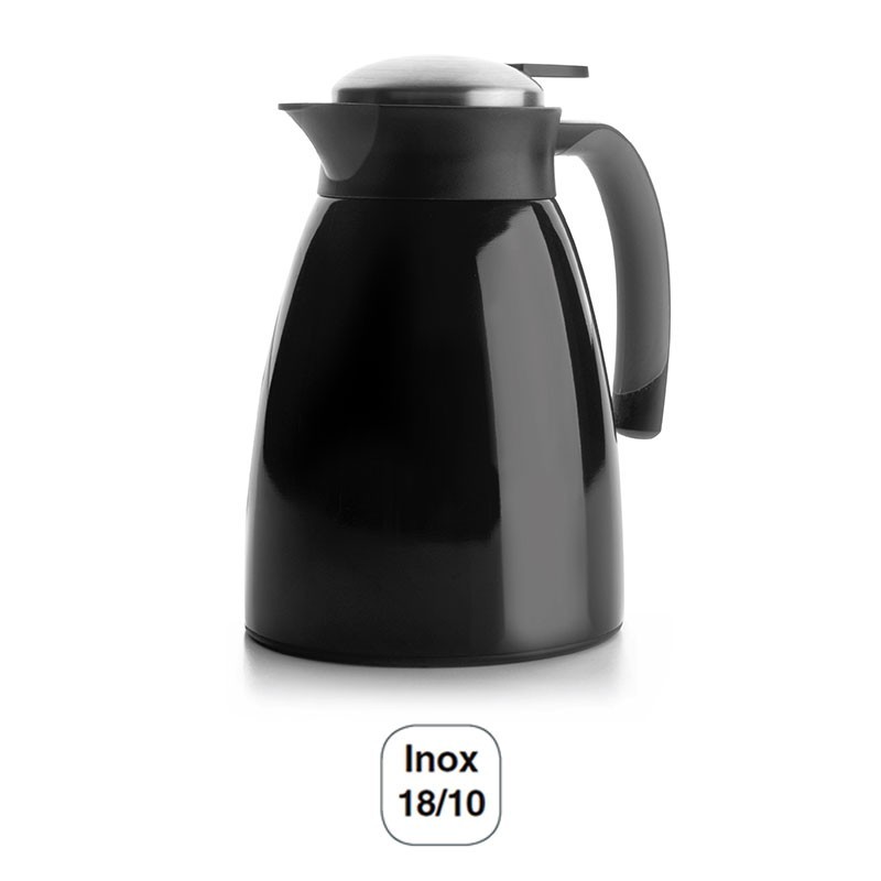 Serveur thermos 1 litre avec couvercle isolé avec bouton-poussoir et le corps de la double paroi en acier inoxydable 18/10 de haute qualité et résistance à la corrosion. Disponible en 2 tailles.