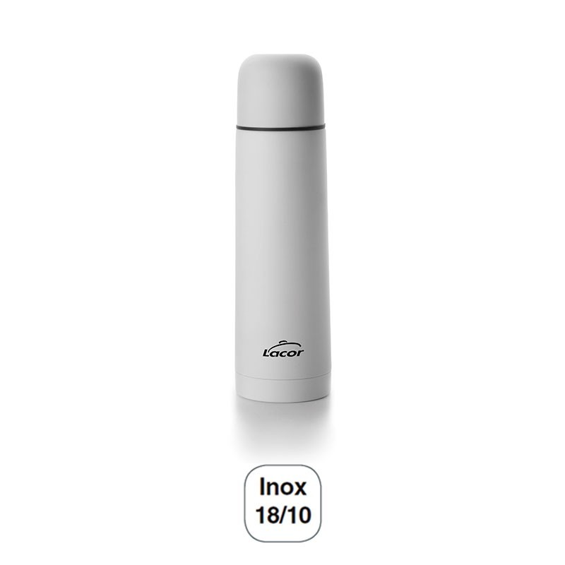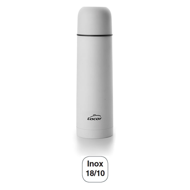 Gourde pour boissons en acier inoxydable 18/10 et de haute qualité extérieur revêtement Soft Touch blanc antidérapant. Disponible en différentes tailles.