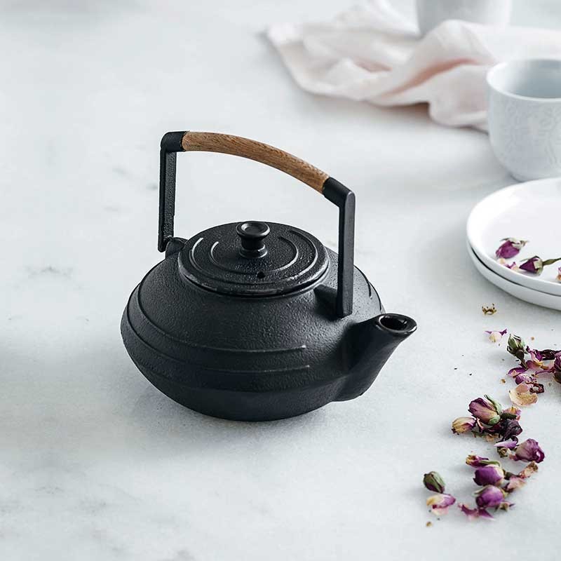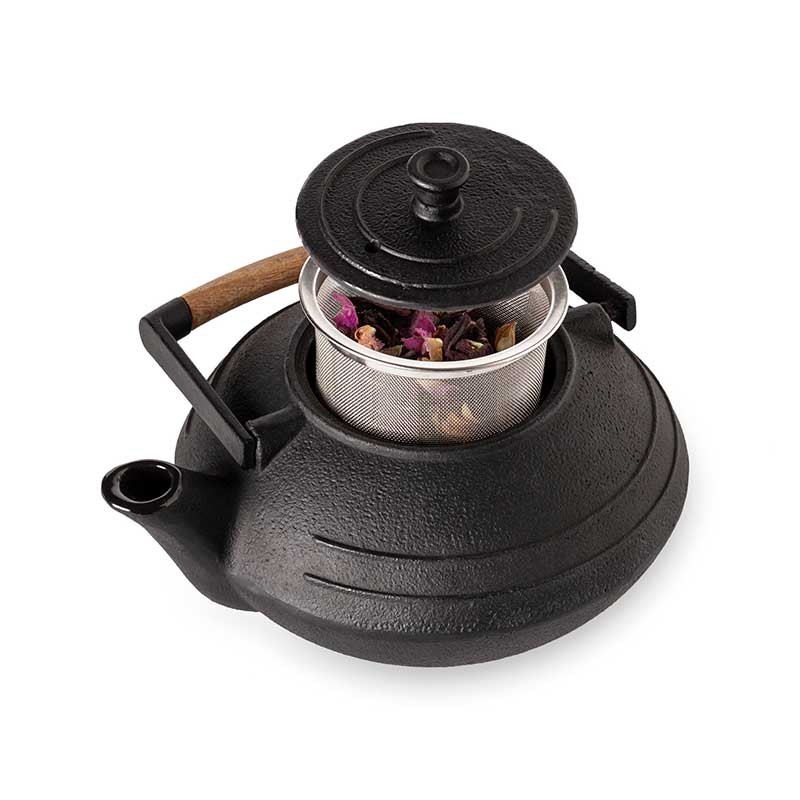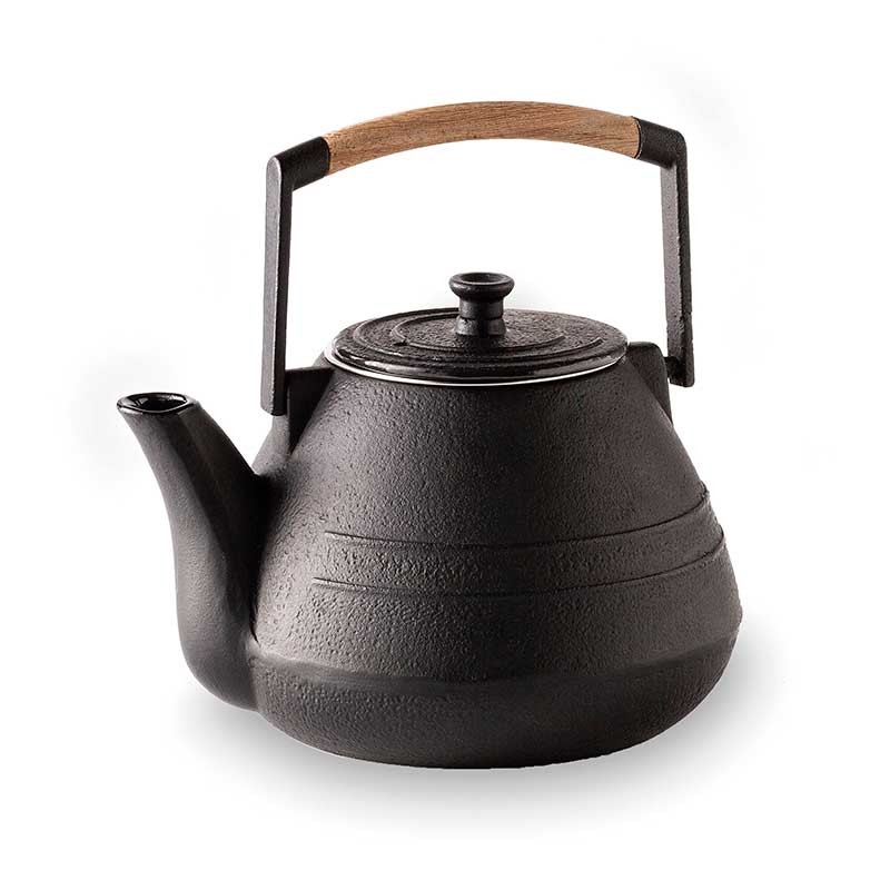 Théière modèle Magma fabriquée artisanalement en fonte daluminium de grande qualité avec infuseur extractible en acier inoxydable.