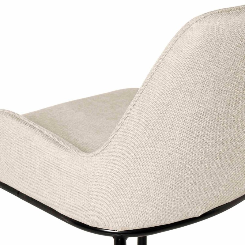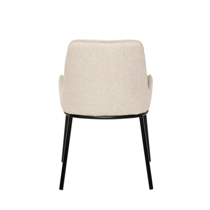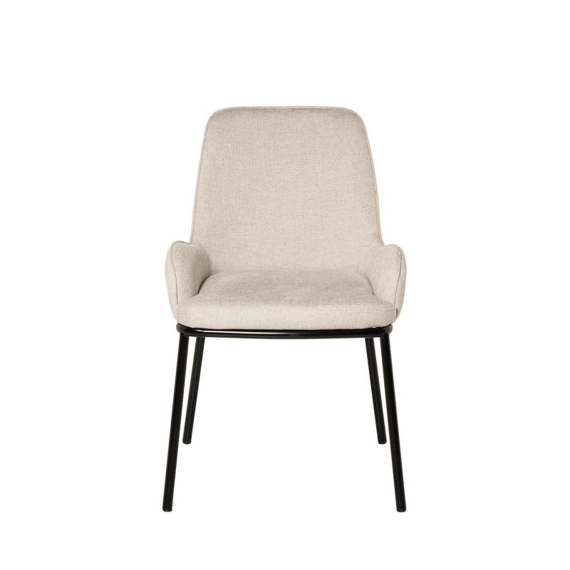 Chaise LARISA : design innovant avec dossier et accoudoirs intégrés. Tissu beige matelassé et détails métalliques noirs. Confort et style moderne.