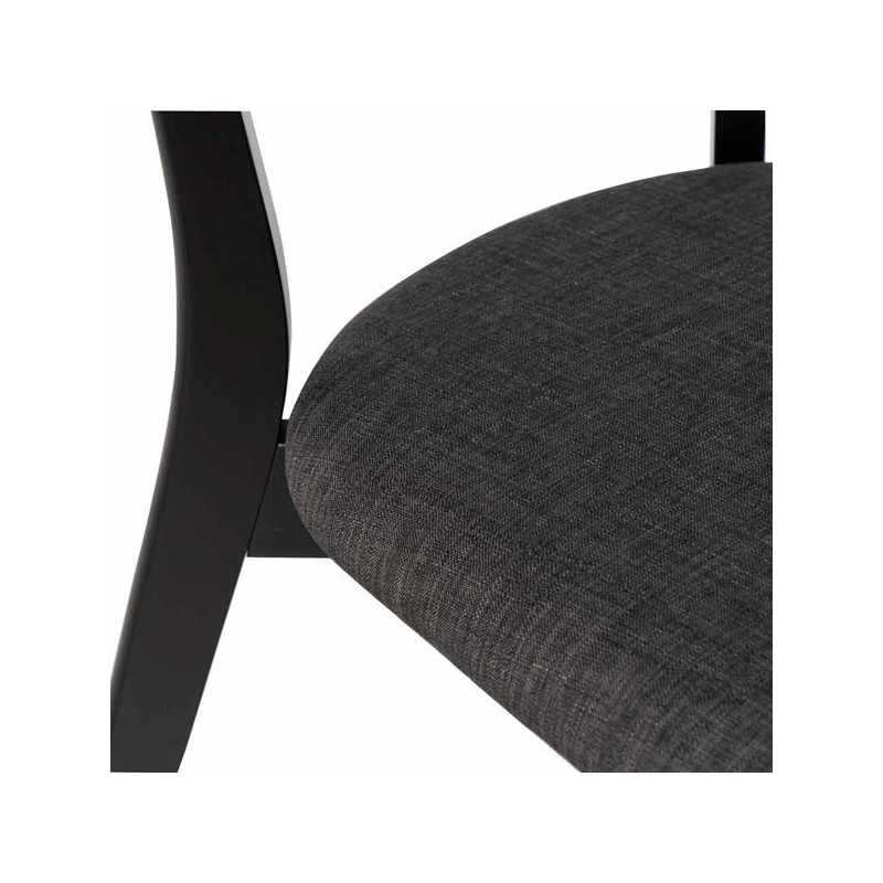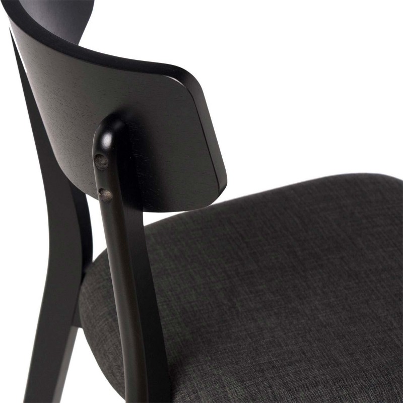 Sa structure est faite en placage de chêne de couleur noire, ce qui lui confère un aspect élégant et moderne. Le siège, tapissé en tissu de couleur noire également (100 % polyester), ajoute une touche sophistiquée.