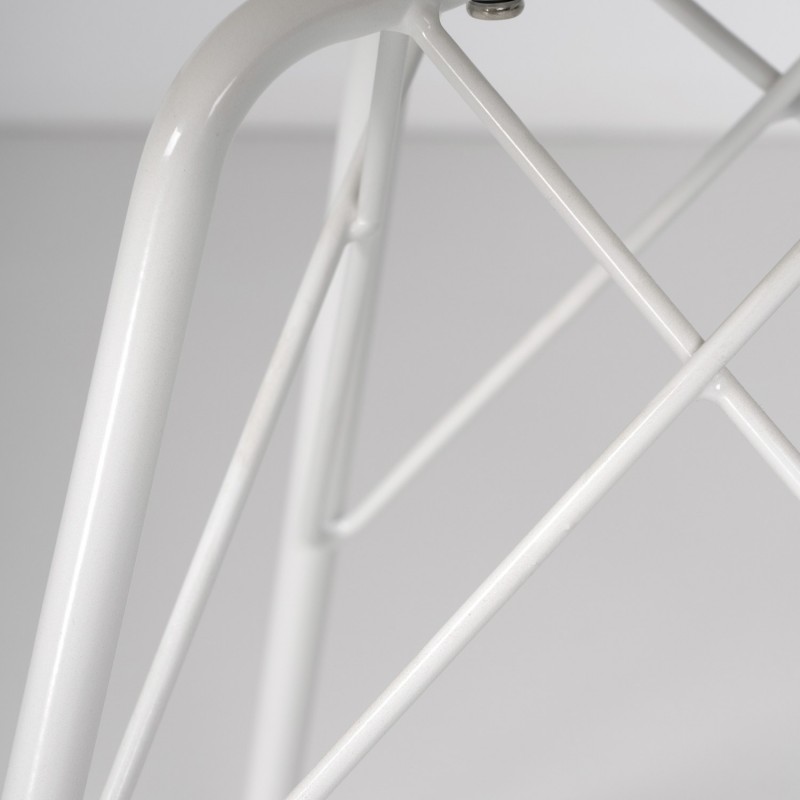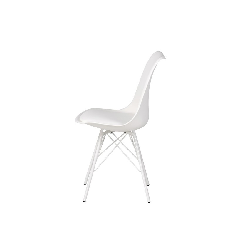 Le dossier, fabriqué en polypropylène avec une légère courbure ergonomique, est conçu pour favoriser une posture confortable et naturelle. Le siège, rembourré en polyuréthane, offre un confort supplémentaire, la rendant parfaite pour une utilisation prolongée. Les pieds en métal, avec une structure entrecroisée, ajoutent non seulement de la stabilité, mais rehaussent également le design minimaliste de la chaise.