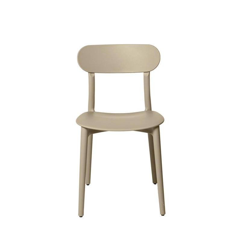 Chaise GRETA en polypropylène, non empilable. Structure robuste, dossier ovale pour un soutien ergonomique et assise concave pour plus de confort.