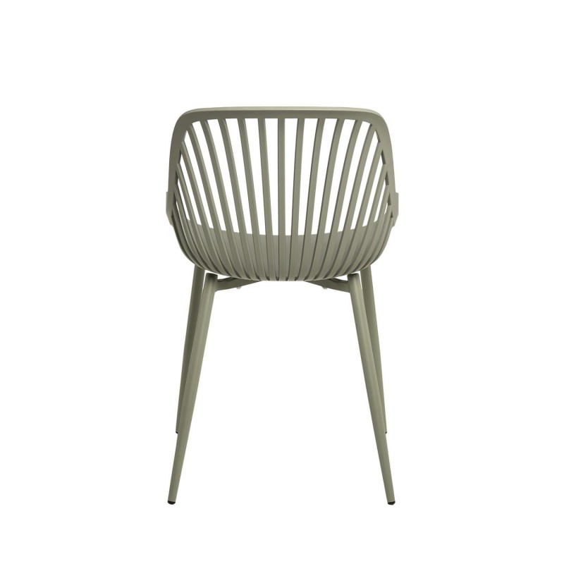 Le dossier, composé de barres fines, ajoute une touche distinctive et moderne, tandis que les pieds en métal stylisés renforcent son aspect sophistiqué, faisant de cette chaise un choix idéal pour tout espace contemporain.