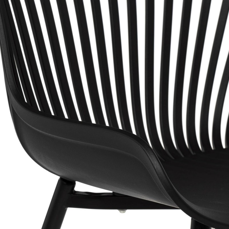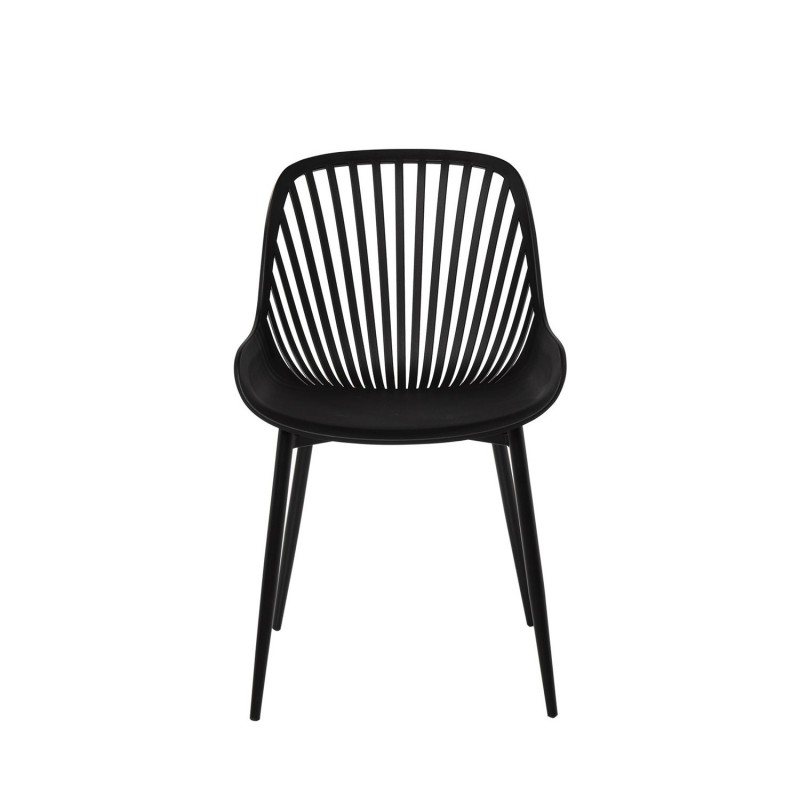 Le dossier, composé de barres fines, ajoute une touche distinctive et moderne, tandis que les pieds en métal élancés renforcent son aspect sophistiqué, faisant de cette chaise un choix idéal pour tout espace contemporain.