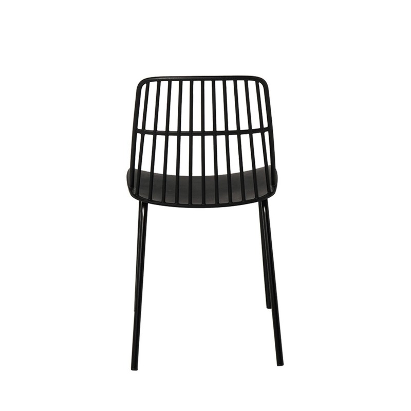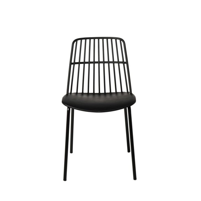 La chaise NERINA a l'assise et le dossier en polypropylène ; son design est caractérisé par les barres fines du dossier, lui conférant un aspect visuellement léger.