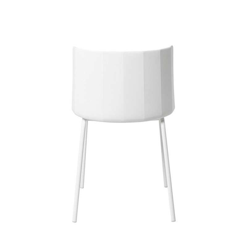 La chaise CADY blanche est un meuble qui se distingue par son design simple et élégant, idéale pour différents espaces. Son dossier présente un léger relief à l'arrière qui lui confère un point de distinction visuel, complétant parfaitement les lignes droites et douces.