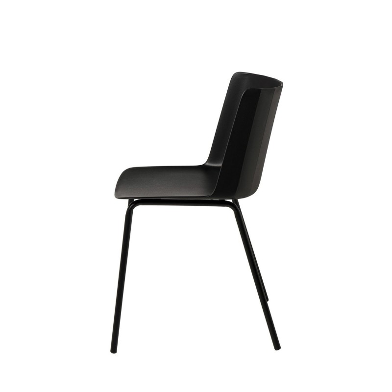 Chaise CADY noire : design simple et élégant, dossier avec relief distinctif, fabriquée en polypropylène résistant et pieds en métal. Idéale pour tout environnement.