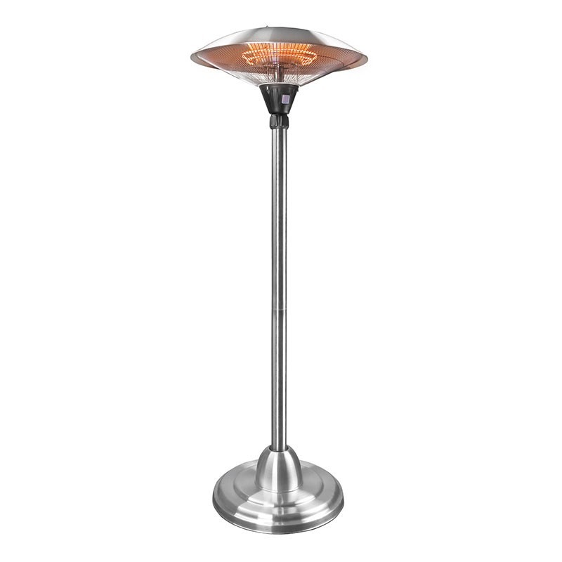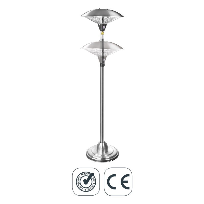 Chauffe-eau électrique de pied pour un terrasses en acier inoxydable avec une lampe halogène à infrarouge et d'une hauteur totale de 210 cm, Disponible en 2 types: fixes et réglables en hauteur.