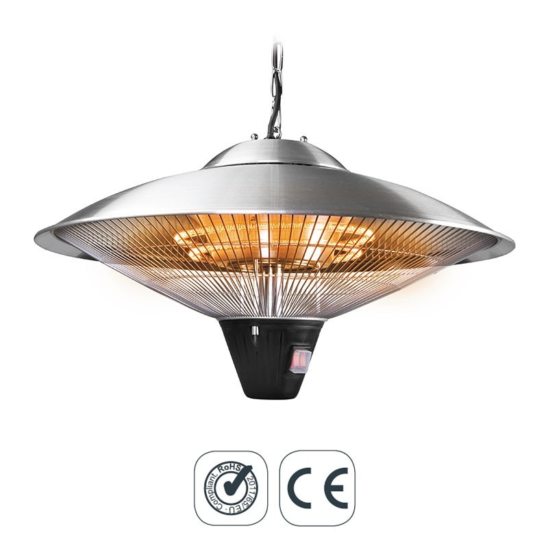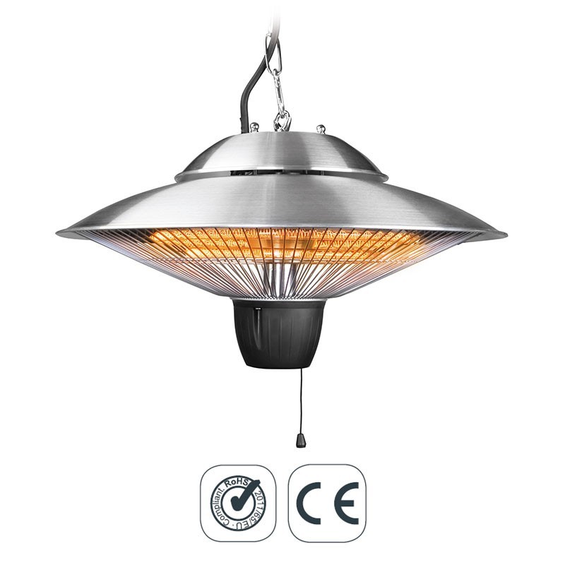 Appareil de chauffage électrique, type de lampe de plafond idéal pour les terrasses sont fabriqués avec de l'acier inoxydable réflecteur et d'une lampe halogène à infrarouge. Disponible en 2 tailles.