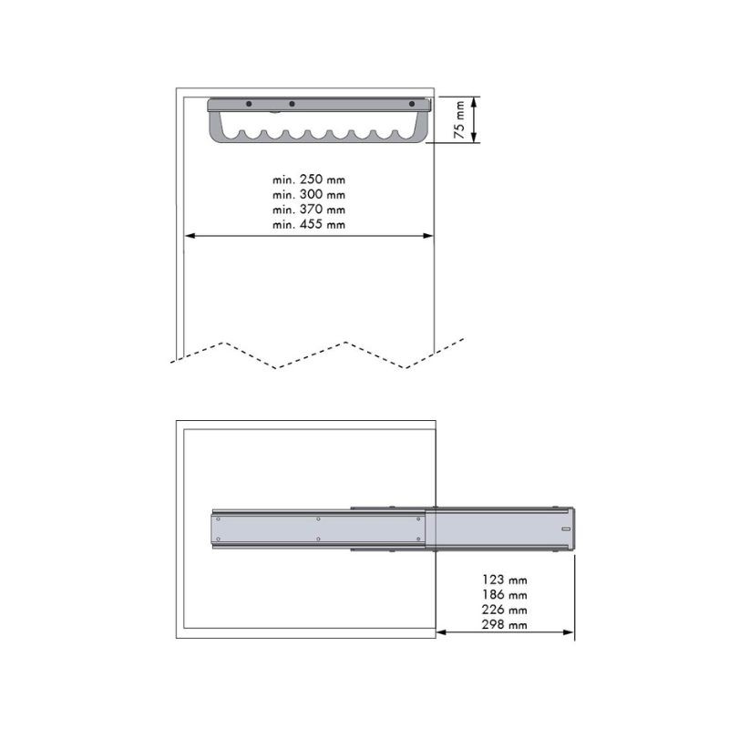 Support coulissant pour cintres à vêtements pour armoires et dressings, de la ligne Chic de Menage Confort. Disponible en plusieurs tailles et finition acier anthracite.
