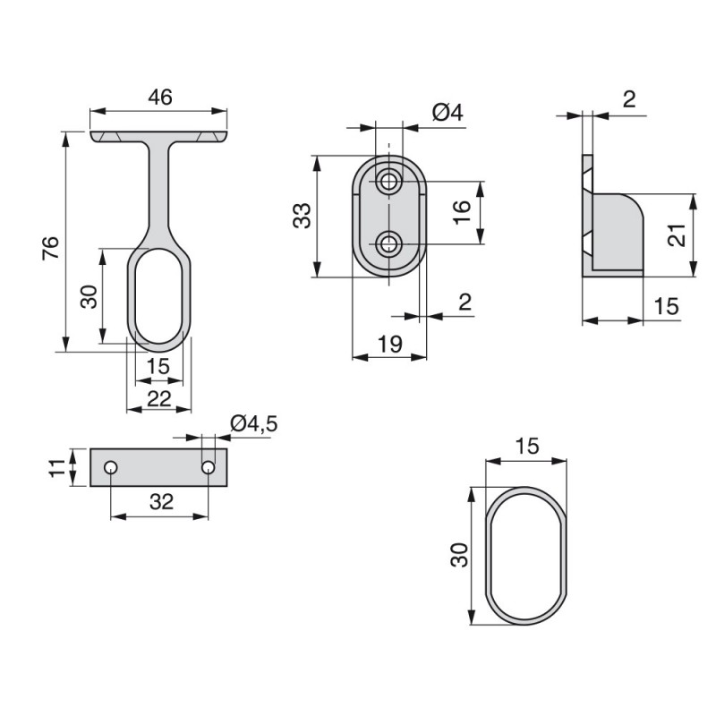 Le kit inclut deux barres de penderie 30x15 mm en acier, accompagnées de crochets latéraux pour une installation facile. Chaque tige mesure 950 mm de long.
