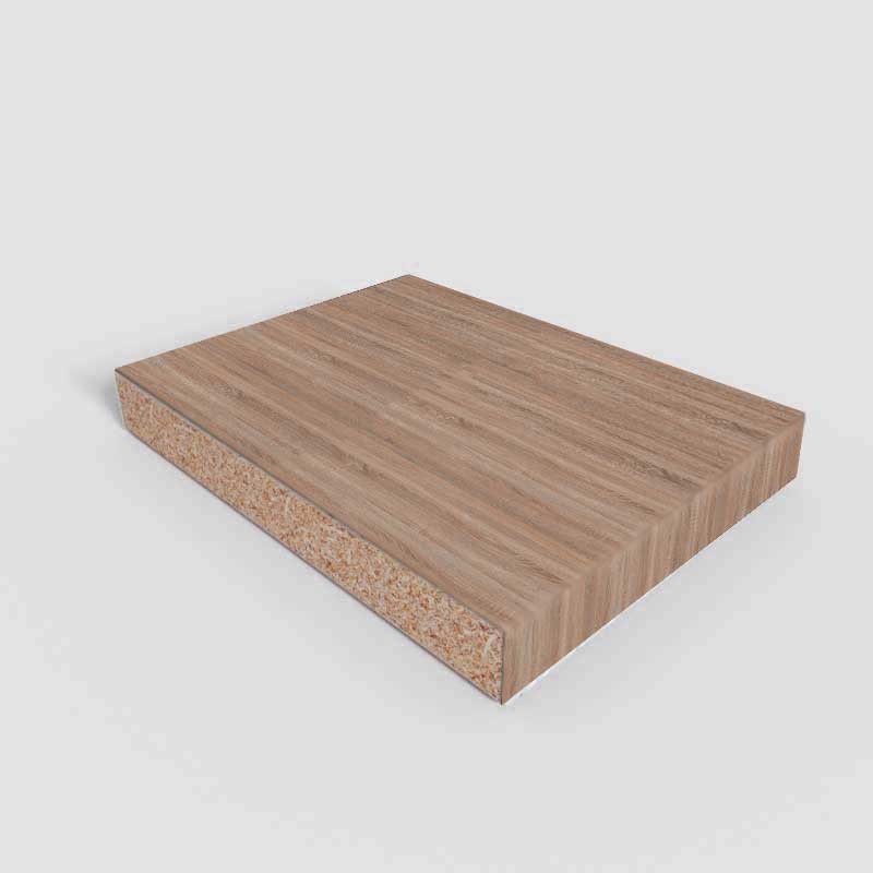 Plan de travail de cuisine en panneau de particules de bois hydrofuge recouvert d'un stratifié haute pression en finition chêne Sonoma Nat.