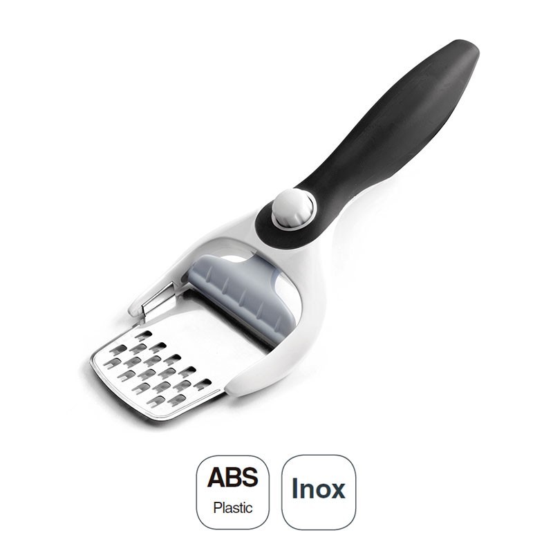 D'une râpe, moulin à fromage 2-en-1 de 23,5 cm de long en acier inoxydable et poignée en ABS.