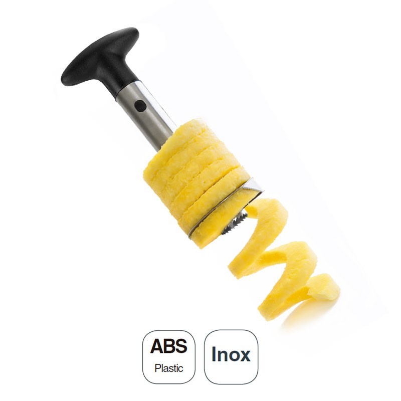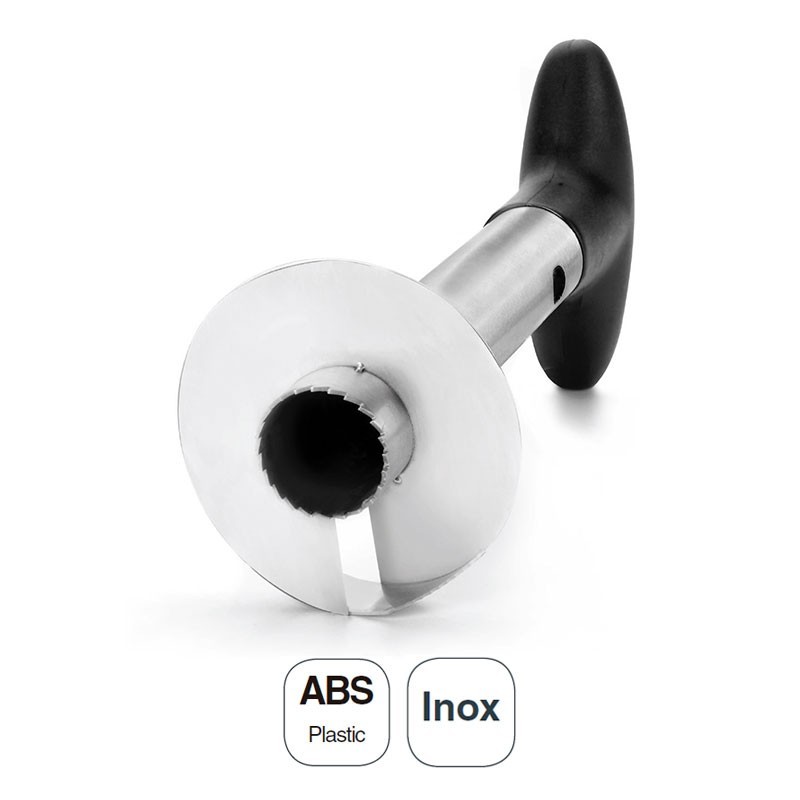 Éplucheur de l'ananas, de 10 cm de diamètre et 23 cm de long en acier inoxydable et poignée en ABS.