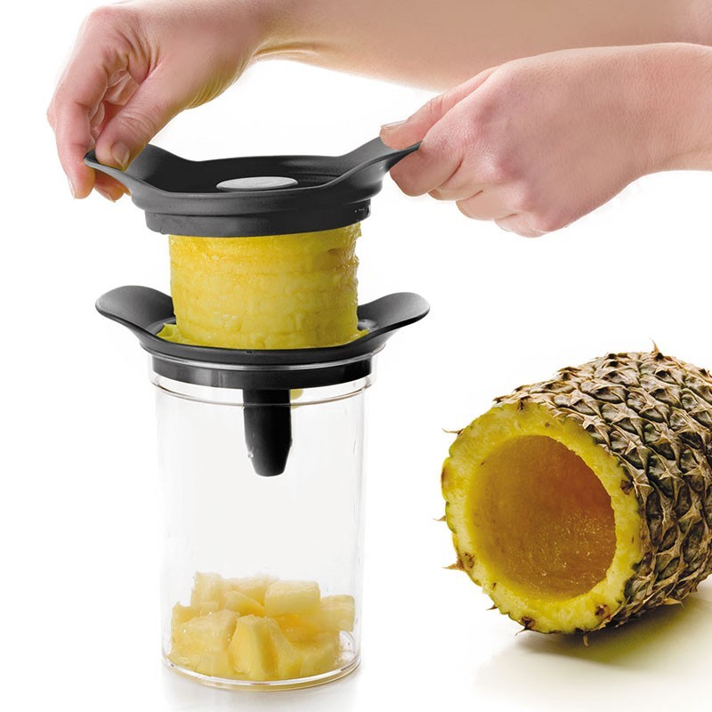 Set 3 en 1 en acier inoxydable et ABS avec un éplucheur de l'ananas, un outil de coupe, bol et d'une base poussoir ou pour la présentation.